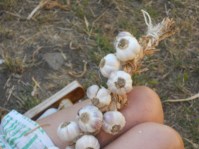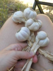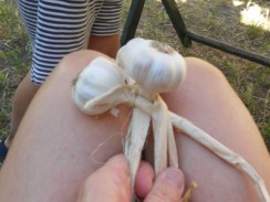 ¿Y las cebollas?. Lo mismo pero más tarde. Se plantan al principio de la primavera, se recogen en pleno verano. Para la trenza sólo valen las pequeñas y medianas. Han de estar bien secas y endurecidas al sol. Si no es así, la conservación será mala. En LRO hemos plantado unas cebollas enormes, de la variedad ‘Leone’ , que son difíciles (imposibles) de trenzar. Pero son sabrosas, un punto picantitas, e incluso empezadas se conservan durante semanas en la nevera. Un cuarto de las que plantamos -no llevo la cuenta exacta- se las comieron los grillotopos, que deben de estar este año orondos y de muy buen ver.