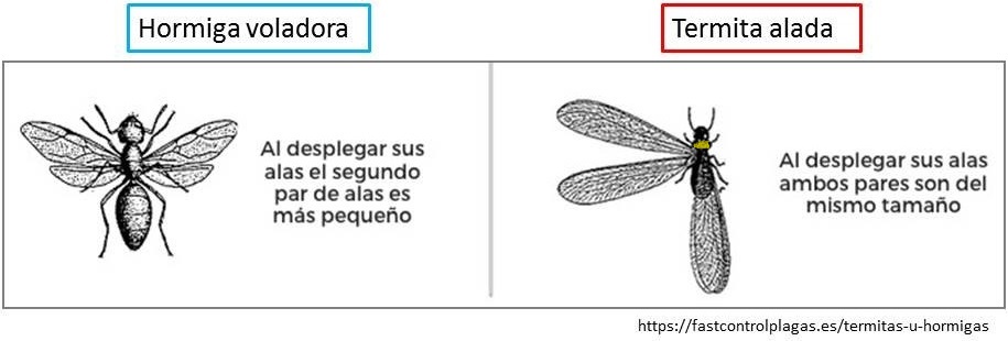 La termita-voladora tampoco se puede confundir con la hormiga-voladora, imposible. Véase el esquema de aquí abajo, sacado de internet. La termita es isóptera. Le he pintado una bufanda amarilla para aprovechar el dibujo. Ahora es una Kalotermes flavicollis alada en el mes de mayo:
