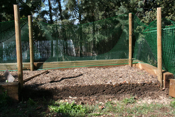 En realidad, esto de la lasaña es una variante casera de las técnicas más extendidas de agricultura «sans labour», “agricultura de conservación”, etc, que tienen como objetivo principal e irrenunciable conservar/incrementar la fertilidad del suelo. Lo característico de todas ellas es el no-laboreo, unido a la protección del suelo con capas de materia orgánica. Lo peculiar de la lasaña, dentro de esta tendencia más amplia de la agricultura de conservación (y dentro del «subgrupo» de los «huertos-elevados», llamados por ahi «raised beds» o «jardins en butte»…), sería el uso de cartones y la colocación alterna de los diferentes materiales. La lasaña es especialmente manejable y útil cuando se trata de mini-huertos, como éste que reproduzo abajo, que se hizo mi amiga Gema cerca de Madrid. El huerto-lasaña está sostenido por traviesas de madera, lo que facilita la retención de los materiales que la forman, y además permite desbrozar sin miedo por toda la periferia (nota: la malla verde es una barrera anti-gatos). La primera foto es del comienzo de la primera lasaña (año 2011, recién desbrozada la parcela), las restantes son de hace unas pocas semanas, al ampliar la superficie cultivable con una segunda lasaña, contígua a la primera (¡atención a la “loncha” de tierra grumosa en que ha quedado convertida la lasaña 1, doce meses después de amontonar broza, hierba y mantillo sobre los cartones!).