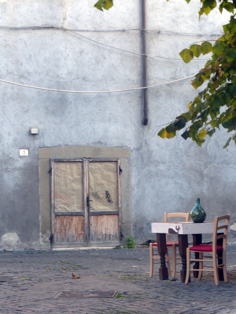 De los recuerdos, de los viajes, durante las noches de insomnio. Alegría para siempre : garrafa de vino bajo la copa de un tilo (Viterbo, 2017).
