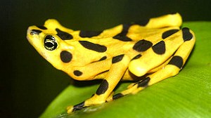 La razón número uno: destrucción del hábitat por presión urbanística, sobreexplotación agraria y contaminación. No hace falta tener estudios para saberlo; los seres humanos somos muchos y no dejamos sitio a los demás. Hablemos sólo de lo que tenemos aquí. Urbanizaciones con segundas residencias donde Jesucristo perdió el mechero, cientos de polígonos industriales, centros comerciales, de oficinas y «de ocio», muchos de los cuales, a día de hoy, no son más que cementerios en medio de la nada, infraestructuras absurdas y megalómanas donde sólo debería haber árboles… Y los animales pagan la factura, en especial los más frágiles y dependientes: anfibios, reptiles, pájaros. Se mueren en silencio y ya está. Se mueren, simplemente. Para que nosotros podamos comprar más y mejor, o llegar a nuestra segunda residencia diez minutos antes, ellos se quedan sin sus lugares de cría, o se ven condenados a morir atropellados cada primavera, cuando sus genes les ordenan iniciar la migración hacia una nueva charca…El cambio climático es la siguiente causa de mortandad, directamente conectada a la primera. La piel de los anfibios es extremadamente delicada; las sequías continuadas y el aumento de la radiación ultravioleta los debilita –al parecer, llega incluso a romper las cadenas de ADN, causa de terribles malformaciones en las larvas–, y los hace más vulnerables a una enfermedad (un hongo) que lleva años diezmando las poblaciones de anfibios en todo el planeta, especialmente en los trópicos, donde se hallaban hasta hace poco los anfibios más diversos y espectaculares que uno pudiera imaginar… como esta ranita dorada de Panamá, por ejemplo, que se ha ido extinguiendo silenciosamente, sin chistar, al igual que tantísimos otros animales de las selvas húmedas de Centroamérica.