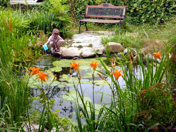 Cuando uno construye un estanque en el jardín lo que hace es crear un deteminado hábitat. Con el tiempo (¡enseguida!) el estanque explotará de vida, sin que nosotros tengamos que hacer nada. Y es más, si en la zona existen suficientes corredores verdes, es posible que algún anfibio acabe llegando a nuestro estanque, por los pasos seguros de ida y vuelta que ellos habrán descubierto, y lo harán siempre por su propio pie (un adulto pionero, que cantará a grito pelado para hacerse notar).