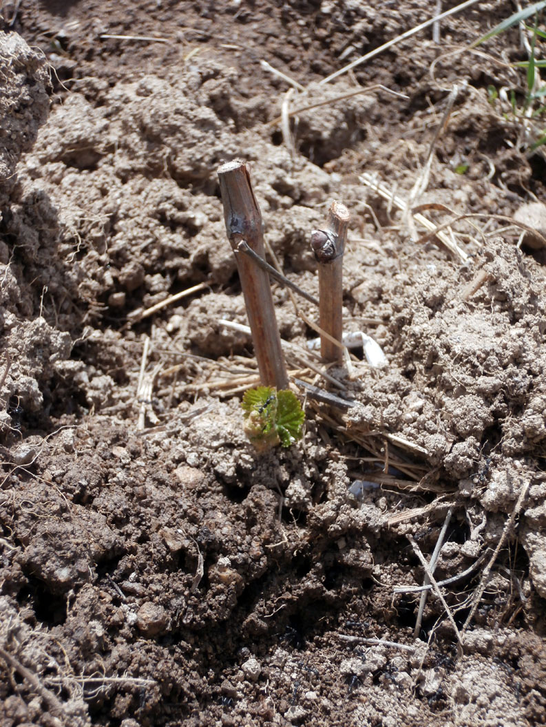 Los injertos de las cepas han prendido. En espera de la lluvia, los riego con mucho tiento (sin desbaratar las uniones) una vez por semana.