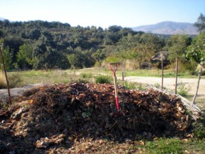 4- Mantener una buena aireación. La descomposición corre a cargo de bacterias, hongos y una larga lista de invertebrados. Es decir, seres vivos. Es decir, seres que respiran, que necesitan oxígeno. El “compostaje” es una descomposición aerobia (en presencia de oxígeno); sin aire la descomposición también se produce, pero es otra historia (el producto final es diferente, se desprenden gases que pueden ser tóxicos, etc). Para mantener la aireación conviene voltear la mezcla cada cierto tiempo (con una buena horca).