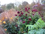 Un hot border es un late border. Y también un mixed border. Esto es: un macizo en tonos atrevidos, que alcanza su zénit hacia el final del verano (ahora), aguantando en plena forma hasta prácticamente noviembre, y en el que arbustos y herbáceas se mezclan. Todas las herbáceas (vegetales sin «leño», para entendernos): anuales, bianuales, y vivaces. Y gramíneas en profusión, que con sus espigas ya más que maduras captan la luz del atardecer y encienden todavía más, si cabe, los macizos «calientes» de este momento del año. Plantas imprescindibles por su floración tardía y ardiente: Helenium, Rudbeckias, Tithonias, Kniphophias, Aster, Crocosmias (aquí florecen ya en julio, pero en Inglaterra un poco más tarde), y las variedades más provocadoras de Dahlia como Bishop of Landaff, de follaje color chocolate y pétalos rojos. Más las omnipresentes y robustas Verbenas bonaerensis. Ch. Lloyd no era seguramente el único en defender este tipo de explosiones coloristas (junto a él, o tras él, esa legión de paisajistas que fomentan el uso combinado de gramíneas y vivaces, como Piet Outdolf y tantos otros, en número creciente). Pero sí fue, al menos hasta donde yo sé, uno de los primeros y más decididos.  Y más influyentes. Autor de una columna semanal en The Guardian, se convirtió en el gurú de este tipo de jardines, cuya característica esencial no era tanto el deseo de provocar como una incontenible pasión jardinera, experimentadora, divertida, jovial, enemiga declarada de las convenciones y la modorra. Después de visitar Great Dixter (en septiembre de 2006), encontré su mismo espíritu en los hot borders del jardín botánico de Oxford y, a partir de ahí,  en mil y un rincones de otros jardines públicos y particulares, no sólo de Inglaterra.