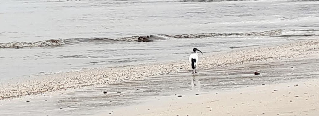 Enero 2023. Threskornis aethiopicus, ibis sagrado o egipcio, originario de Africa subsahariana y oriental. Clasificado como «especie exótica no establecida» en este tramo del Atlántico, pero como especie exótica-nidificante en el tramo francés, de donde quizá proviene este ejemplar ¿desorientado, pionero…? que vagaba esta mañana por la playa de Sada. He vuelto a buscarlo unos días después pero ya no estaba. Seguían los vuelvepiedras, como locos por la orilla, los correlimos y una media docena de espátulas. Entre los sedentarios o casi, varias parejas de garzas, una única garceta, ánades reales y silbones, ¿un ganso?, y docenas de gaviotas reidoras (aquí, choronas), sobrepasando en número a las patiamarillas.